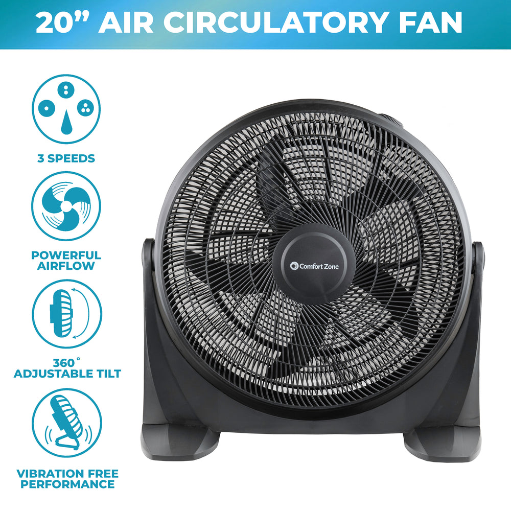 Keep your space comfortable during the warmer months or improve air circulation all year round with this Comfort Zone 16" oscillating fan. The indoor fan offers three speed settings, allowing you to easily adjust its output to suit the requirements of your space. The 3-speed oscillating fan is easily tilted to direct its airflow to just the right spot, and it oscillates to help circulate air throughout the widest possible area. The fan is designed to be wall-mounted, which saves valuable table or counter space and helps to improve safety by keeping its fast-moving blades away from curious pets and children. A tough metal grill keeps the blades securely contained while the wall-mount indoor fan is in use for enhanced safety. The remote-free design means there is no need to worry about misplacing the controller. Simply tug on the two 13" cords to turn the fan on and off or to adjust the speed of the blades.