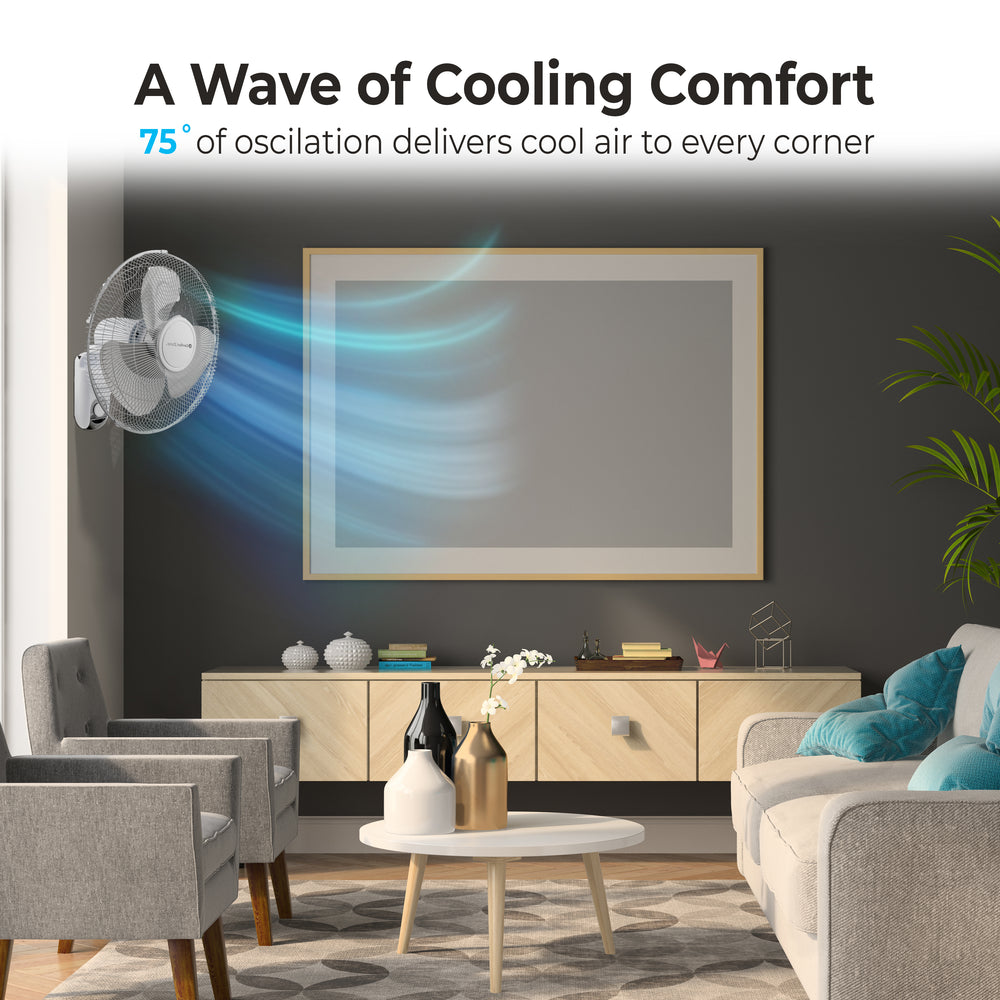 Comfort Zone 16" 3-Speed Oscillating Wall-Mount Fan