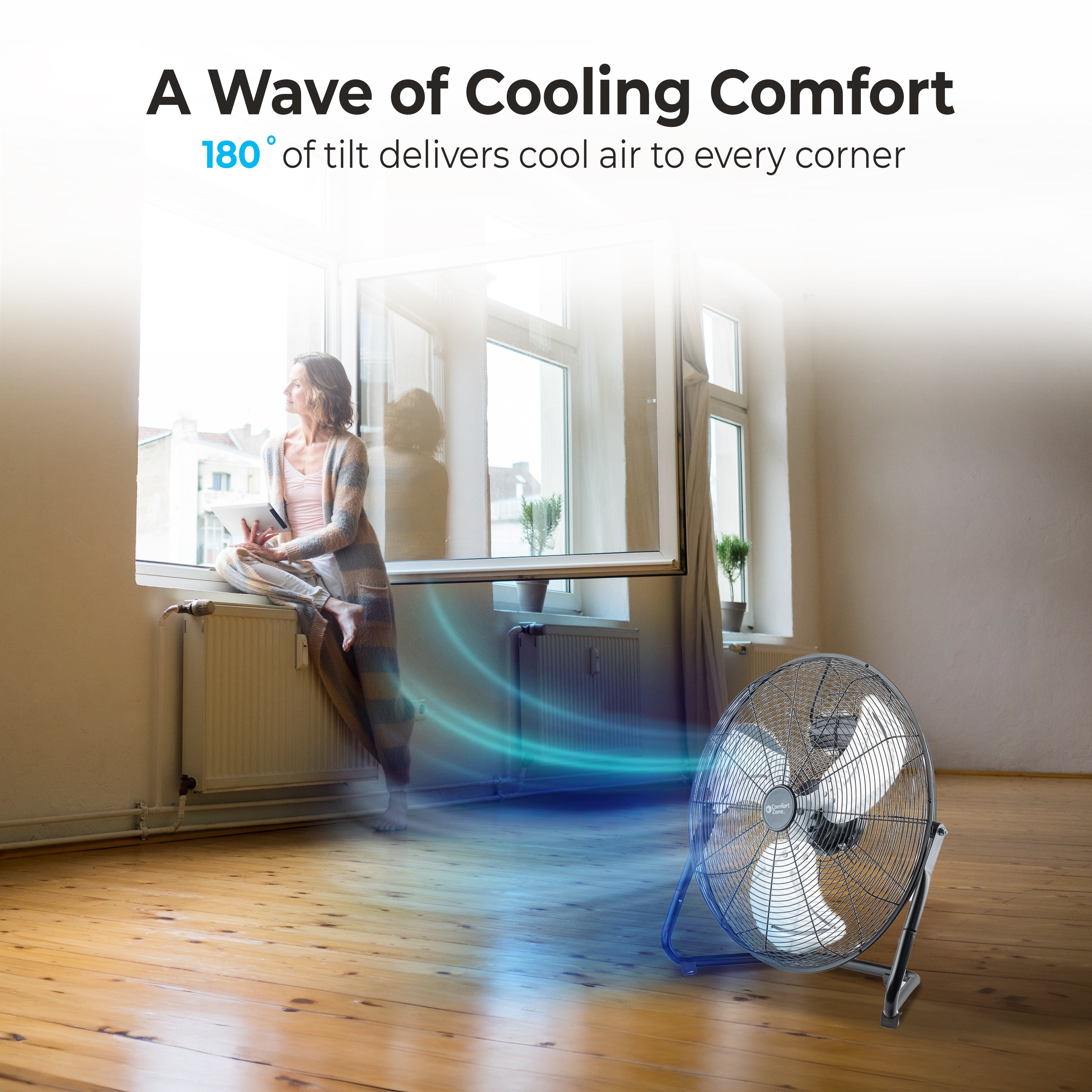 - This Comfort Zone 20" high-velocity heavy-duty industrial floor fan delivers impressive airflow, making it ideal for cooling large rooms, garages, or workshops.