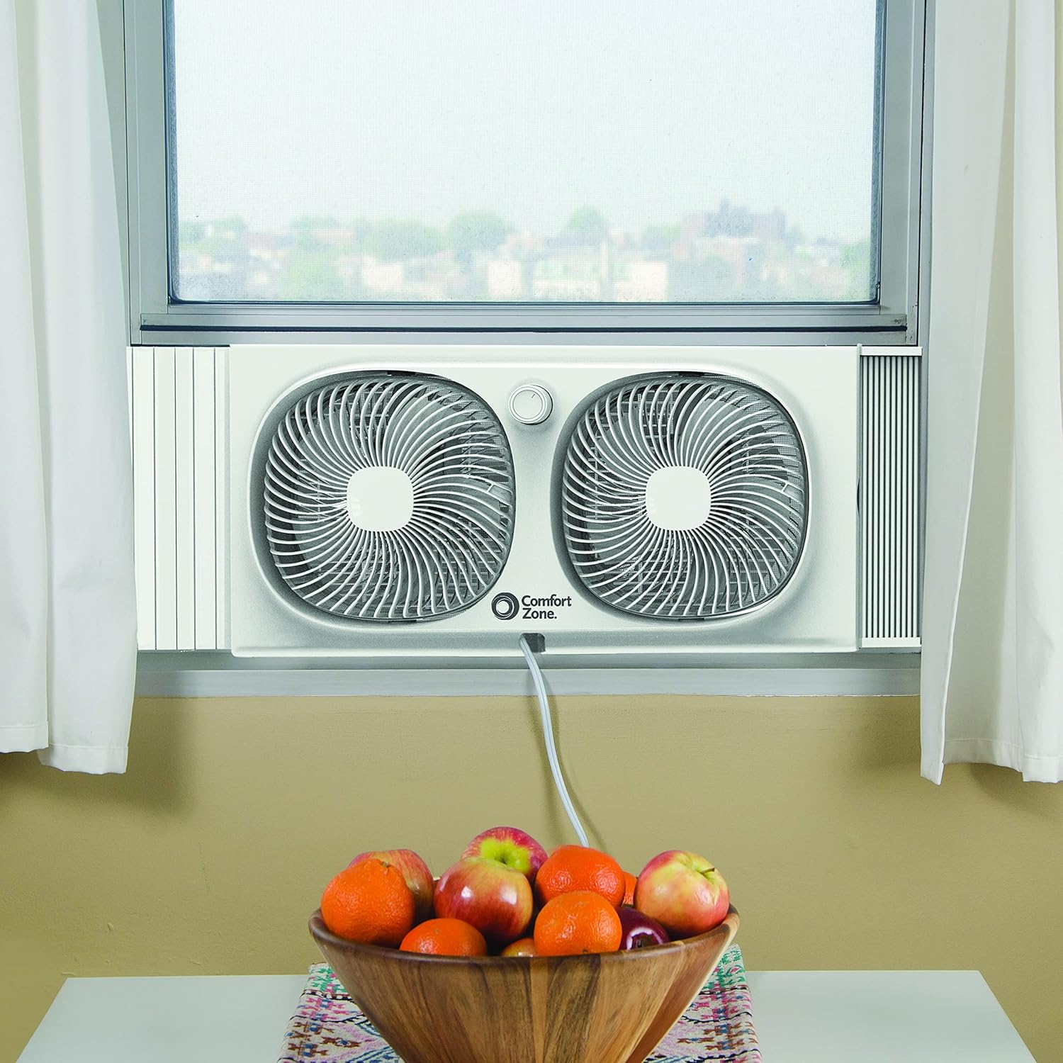 Comfort Zone 9" 2-Speed Twin Window Fan with 180 Degree Rotating Fans