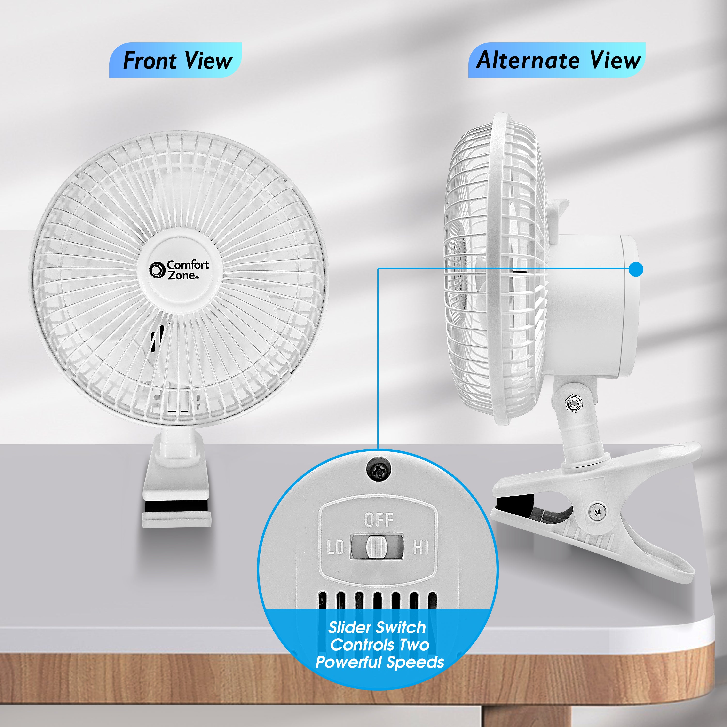 Comfort Zone 6” 2-Speed Desk Fan with Clip and Adjustable Tilt